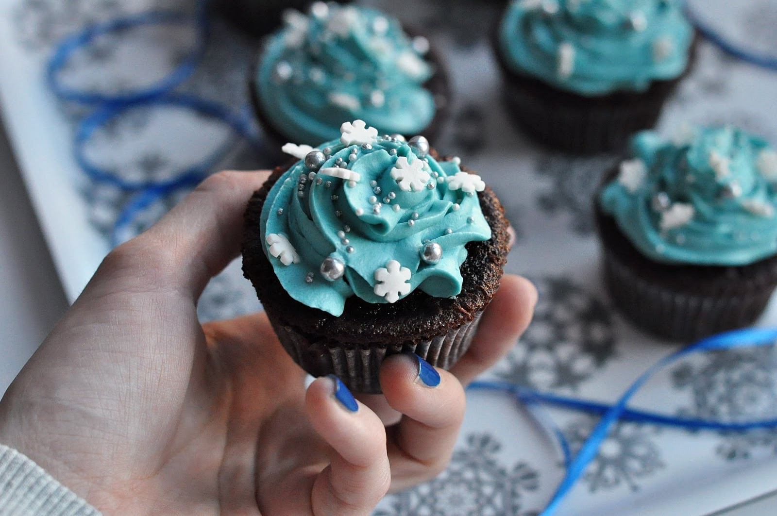 Ещё несколько месяцев назад я увидела фотографию чудных капкейков с зимними посыпками и решила,что обязательно надо сделать такие капкейки на зимнюю тематику) Когда я была в Финлядндии,я купила прекрасный набор для украшения с серебрянными и золотыми шариками,а главное со снежинками.Их можно сделать и самим,разными способами,но у меня не хватает времени и я ограничилась покупными. Кексы ещё нежнее,чем всегда,потому что